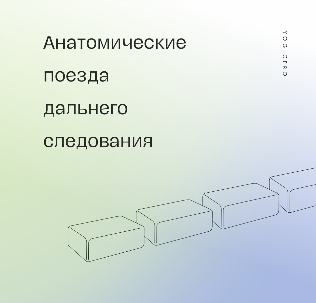 Анатомические поезда представляют собой соединения фасции и кости, опутывающие все наше тело, соединяя голову с пальцами ног, что помогает держать баланс и двигаться. Представьте что каждую мышцу окутывает фасция, несколько групп мышц окутывают ещё фасции, далее они собираются в длинное и большое полотно из мышц и соединительных тканей. В нескольких местах крепятся к костям. Из этого всего и собираются анатомические поезда (миофасциальные меридианы/цепи). На всем протяжении цепей могут быть зажимы, спайки, что может мешать движению тела. Если вам сложно совершить глубокий наклон, то есть проблема в задней поверхностной линии. Или боль в шее, может означать проблему в стопах. Передняя и задняя линии противоположны друг другу, как и боковые. Если в одной линии спазм и зажатие, значит в противоположной-перерастяжение. И чтоб расслабить одну сторону, нужно напрячь противоположную. Зная все тонкости анатомических поездов, можно прекрасно корректировать тело.